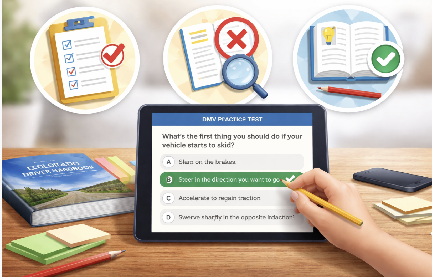 Reading the handbook matters, but reading alone is often not enough. The best way to prepare is to answer questions, review explanations, and learn why an answer is right or wrong.